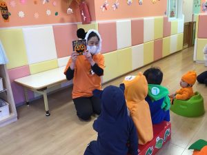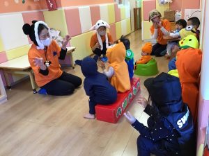 まずはみんなが大好きな、ハロウィンバージョンの手遊びから🎵