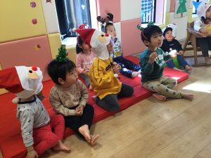 好きな被り物を選んで、クリスマス会スタート❣