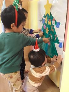 そのあとは、みんなでクリスマスツリーの飾り付け✨