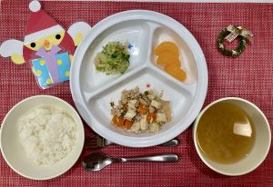 サンライズキッズ保育園 ◎給食の様子 チキンチャップとご飯はとても合いますよね!ご飯をたくさんおかわ...