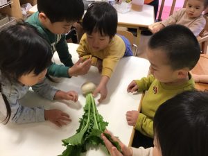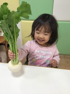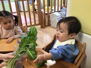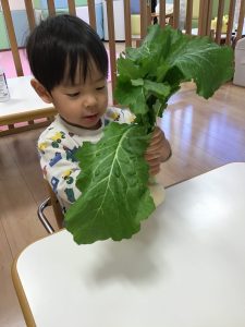 大きな葉っぱに興味津々な子どもたちでした(*^^*)