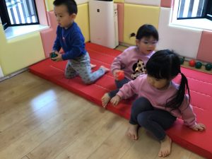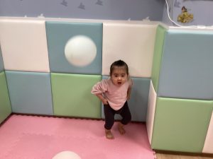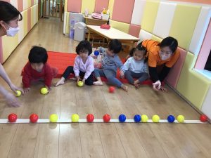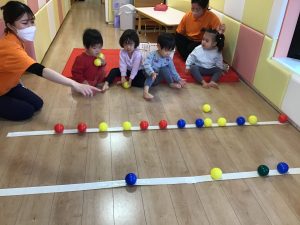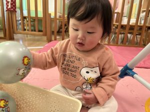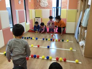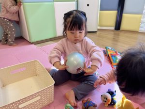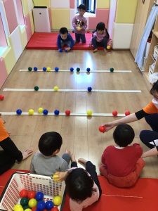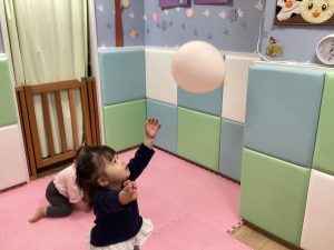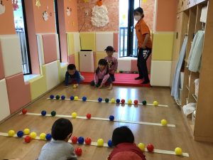 ボール遊びで盛り上がっている声に惹きつけられて保育室をのぞくと、、