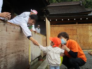 今週は「はだかまつり」の神事があり、子どもたちも散歩途中で寄り道