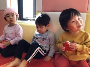 おしくらまんじゅうのリズムに合わせて