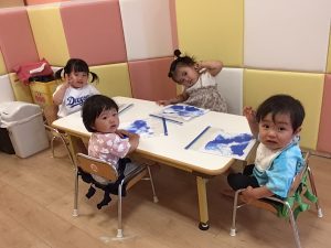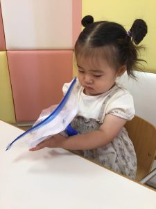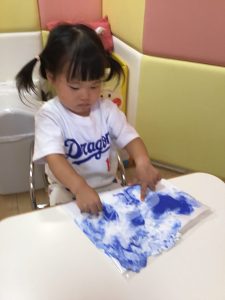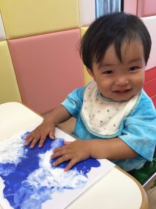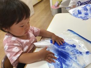 感触遊びを楽しんでいた1歳児さんたち