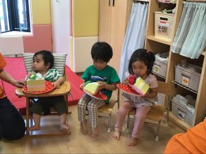 誕生月のお友だちがみんなに🎂ケーキを配ってくれましたよ