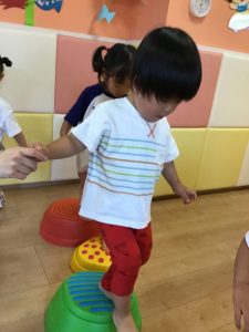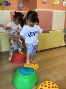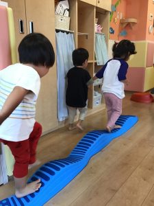 でこぼこの平均台も大人気!