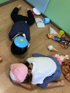 子どもたちに「地震があったらどうするんだっけ??」と聞いてみました。