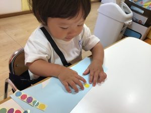 シールとお絵描きをして、