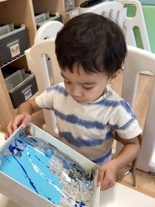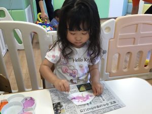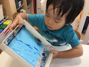 ビー玉転がしとにじみ絵をして、