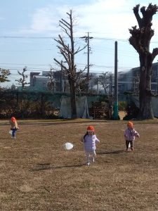 グラウンドを目いっぱい使って、走り回る子どもたち😊