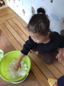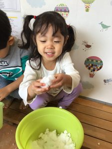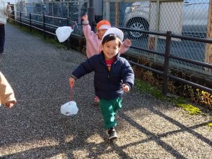 園でもバケツに雪を集め、少しだけ触って雪遊びを楽しみましたよ🤭