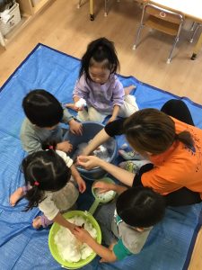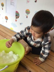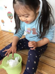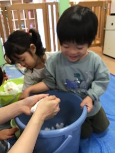 2歳児さんはブルーシートの上で触りました❄
