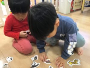 2歳児さんは絵合わせ遊び🐰😺🐻