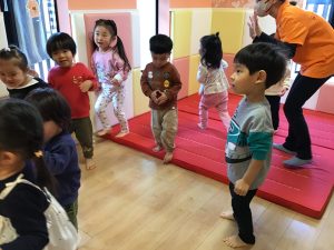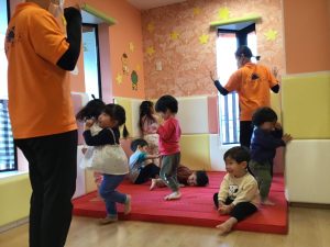 リトミックではお馴染みのstop & go!も英語の歌に合わせてやってみましたよ!