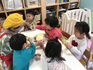 そして、2月は食育でキャベツを観察しました🥬