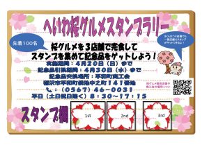 ⭐対象店舗でへいわ桜グルメを購入し、スタンプを3つ集めると景品をプレゼント🎁(先着 100人)