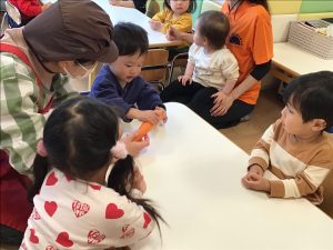 「これなーに?」「おやさいのにおいする!」など、子どもたちの素直な声がたくさん聞こえてきました😊