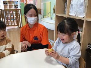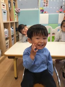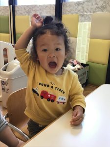 保育者と一緒にお返事して可愛らしい姿を見せてくれましたよ🥰