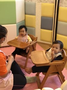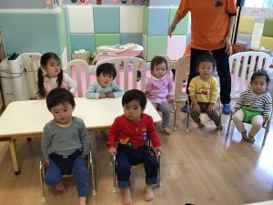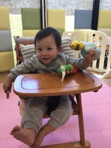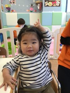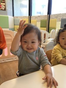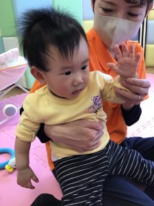 0歳児さんは、まだ手をあげるのが難しいけれど、