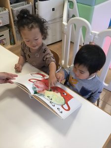 友だちと一緒に絵本をのぞき込んだり、登場するイラストを指差して教え合ったりする姿もとても可愛らしく、思わずほっこり🤗💓‪