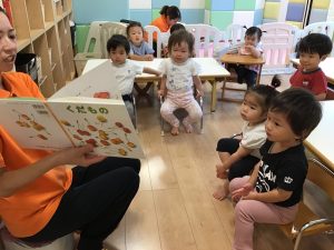 おいしそうな絵に「ぱくっ」と真似して食べるしぐさを見せる子もいて、とっても可愛かったです💓