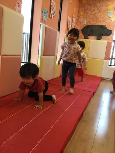 ハイハイでゆっくりゆっくり進む子どもたち!