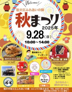 9月28日(日)10:00〜14:00 に祖父江ふれあいの郷で「秋まつり」が開かれます!🏮