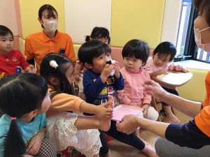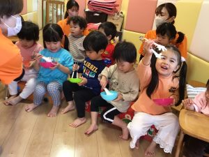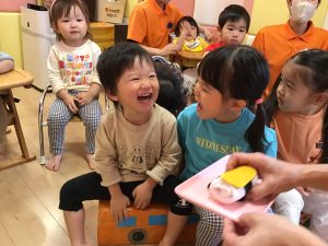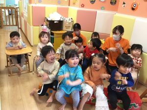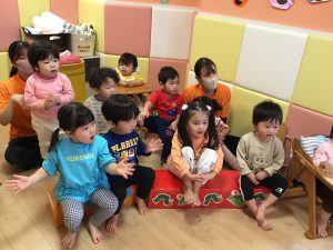 まずは手遊び「ミックスジュース」🥤とハンカチシアター「誕生日のランチ」でスタート!🥪