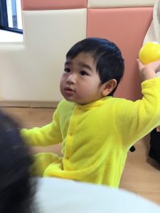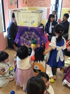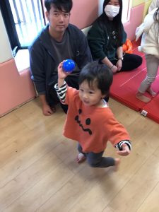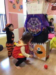 1歳児保育室では「くものす的当て」や「ボール投げゲーム」を楽しみました🎯