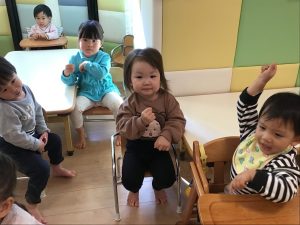 と音楽が流れると、くるくる〜と腕を回したり、体を揺らしたりしながら、思い思いに楽しむ姿が見られています😊