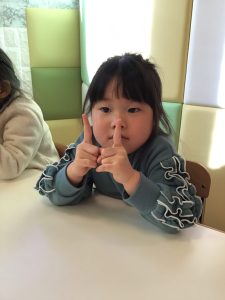 こっそりのポーズは「シ!」をして…