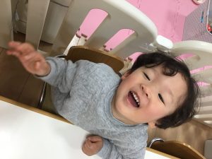 0歳児さんは目をまんまるにしてにっこり😊