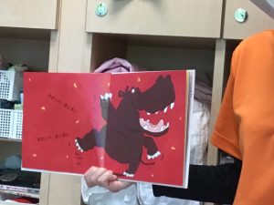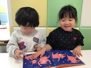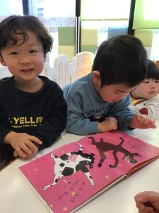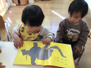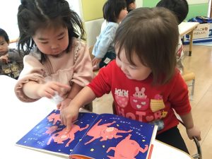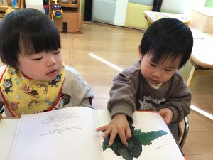 絵本を見ながら