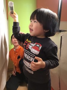 保育室に入ると、大きな白い紙が…!