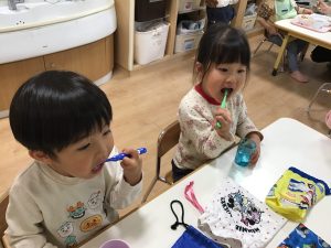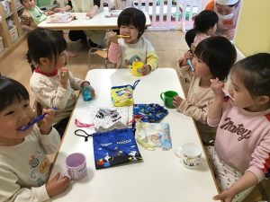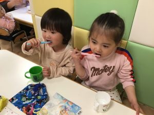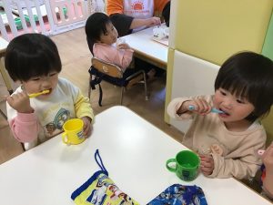 最近は、2歳児さんが園でも歯みがきを始めています🪥