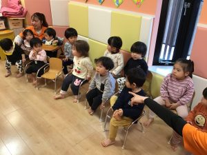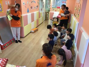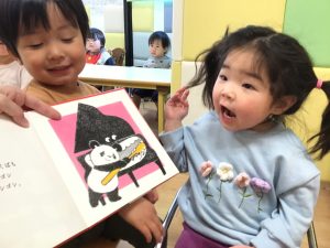 保育室に集まり、まずはひなまつりの絵本タイム📖