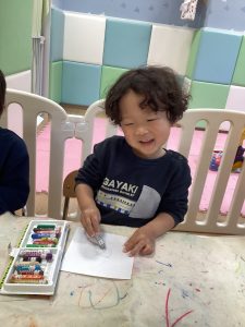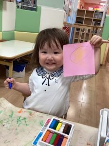 2歳児さんは、クレヨンで描いたり手型取りをしたり🖍