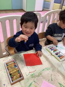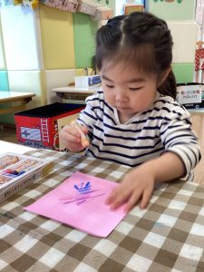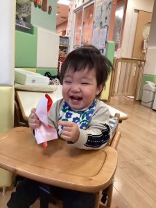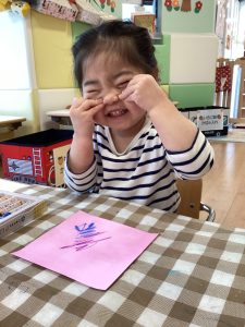 紙の感触や音が面白かったようで、素敵な笑顔で取り組んでいましたよ😊💖