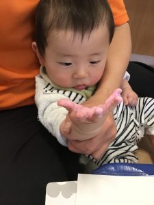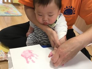 0歳児さんは、初めての手型・足型取りに挑戦👣✨