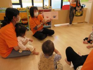 のところでは本当にひっくり返る子もいて、絵本の内容をよく理解しているのだなと感じました。