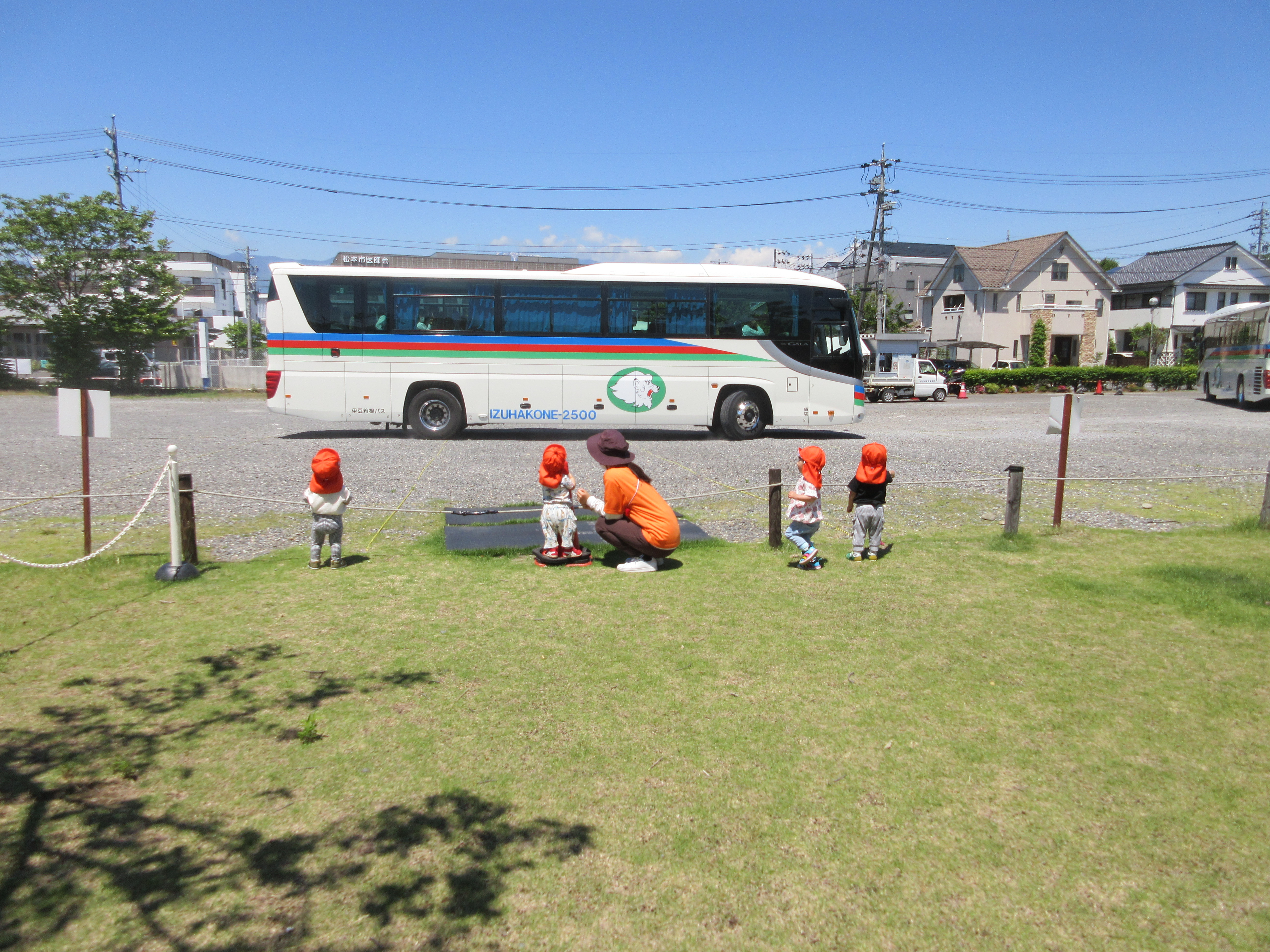 バスが大好きな子どもたち。隣の駐車場に観光のバスがよく停まるのですが、バスが来るたびに「あーーーー!」と指さして大興奮。