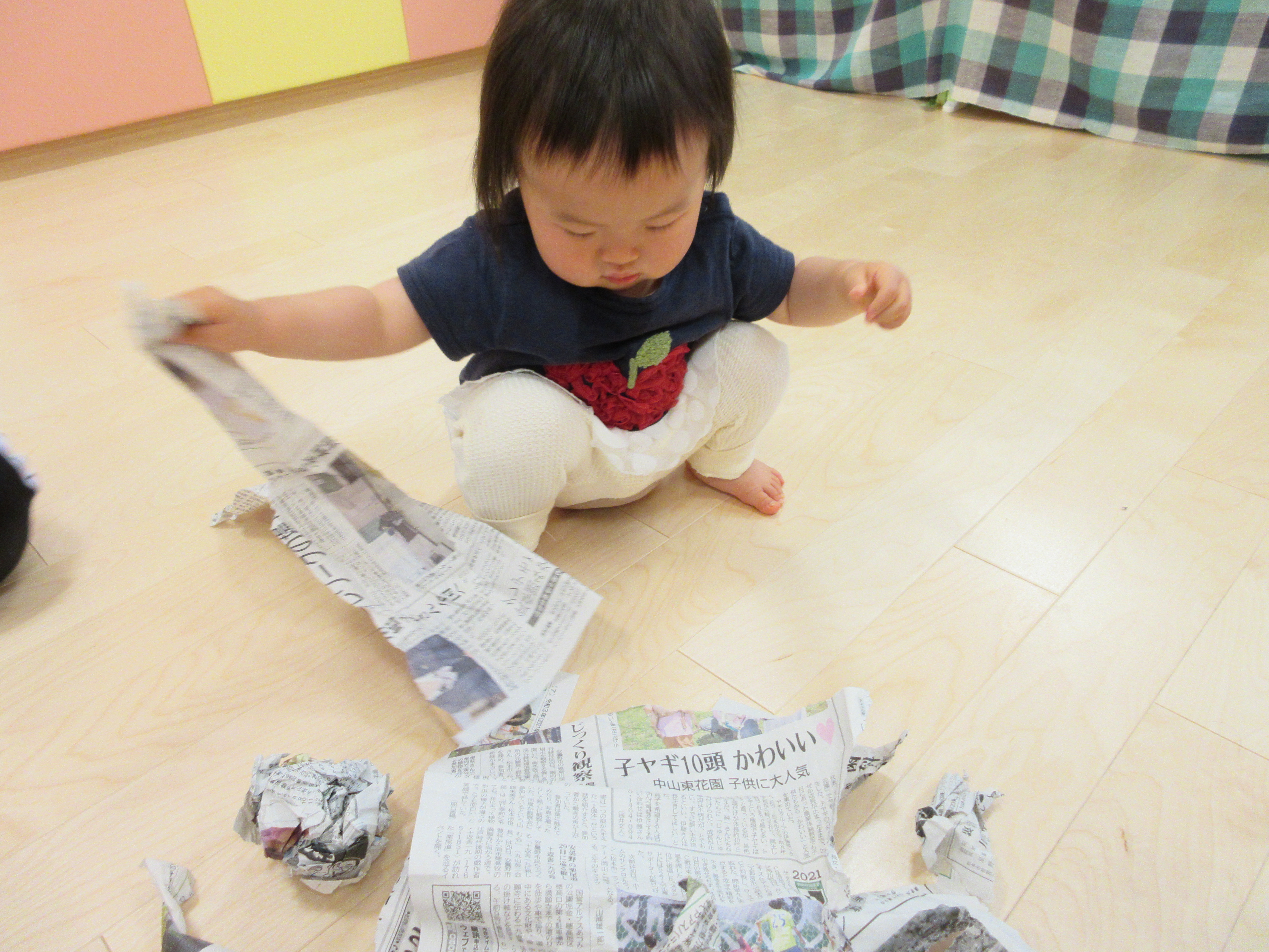 今週は天気が良い日はボールやシャボン玉遊び、雨の日は新聞紙遊びを楽しみました。