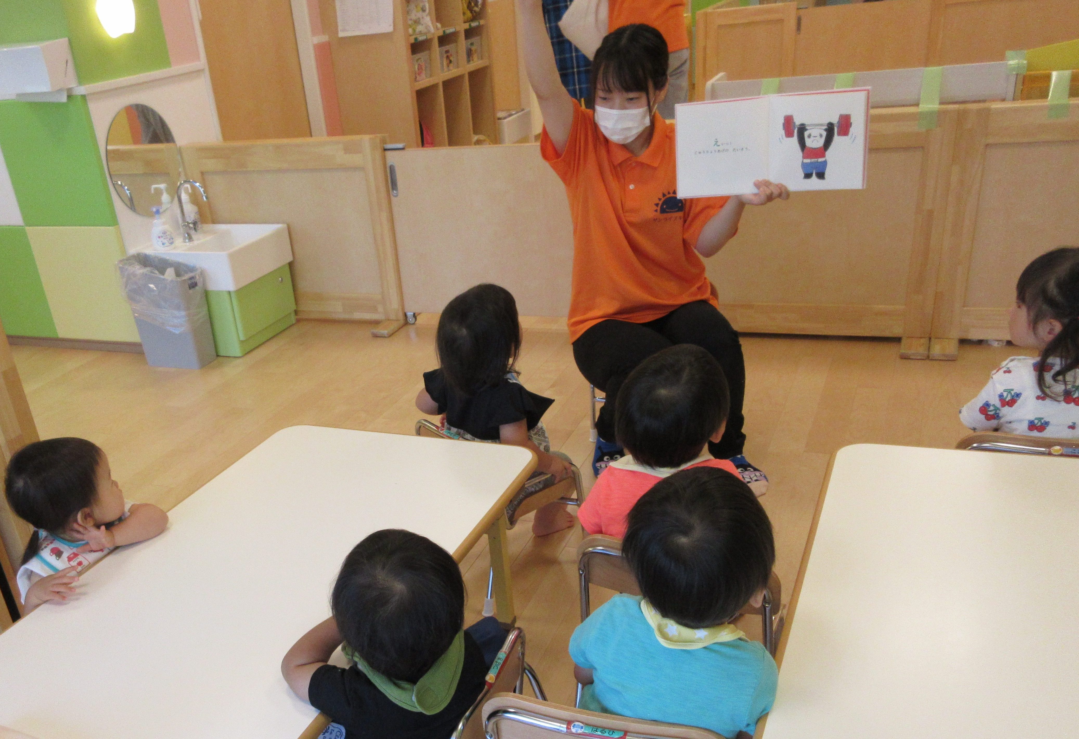 読み聞かせでは絵本に出てくるパンダのマネをして一緒に手足を動かす子もいました。