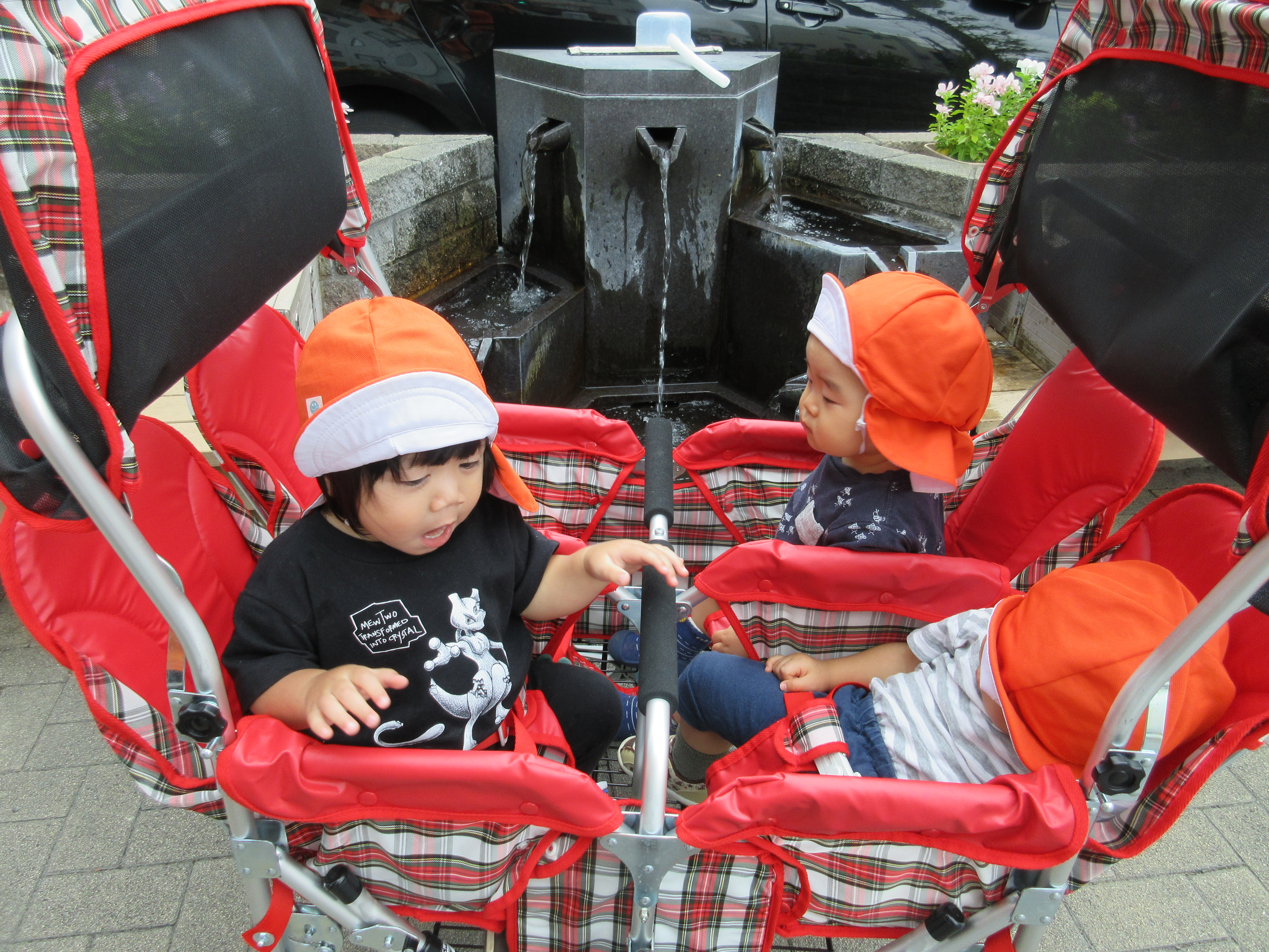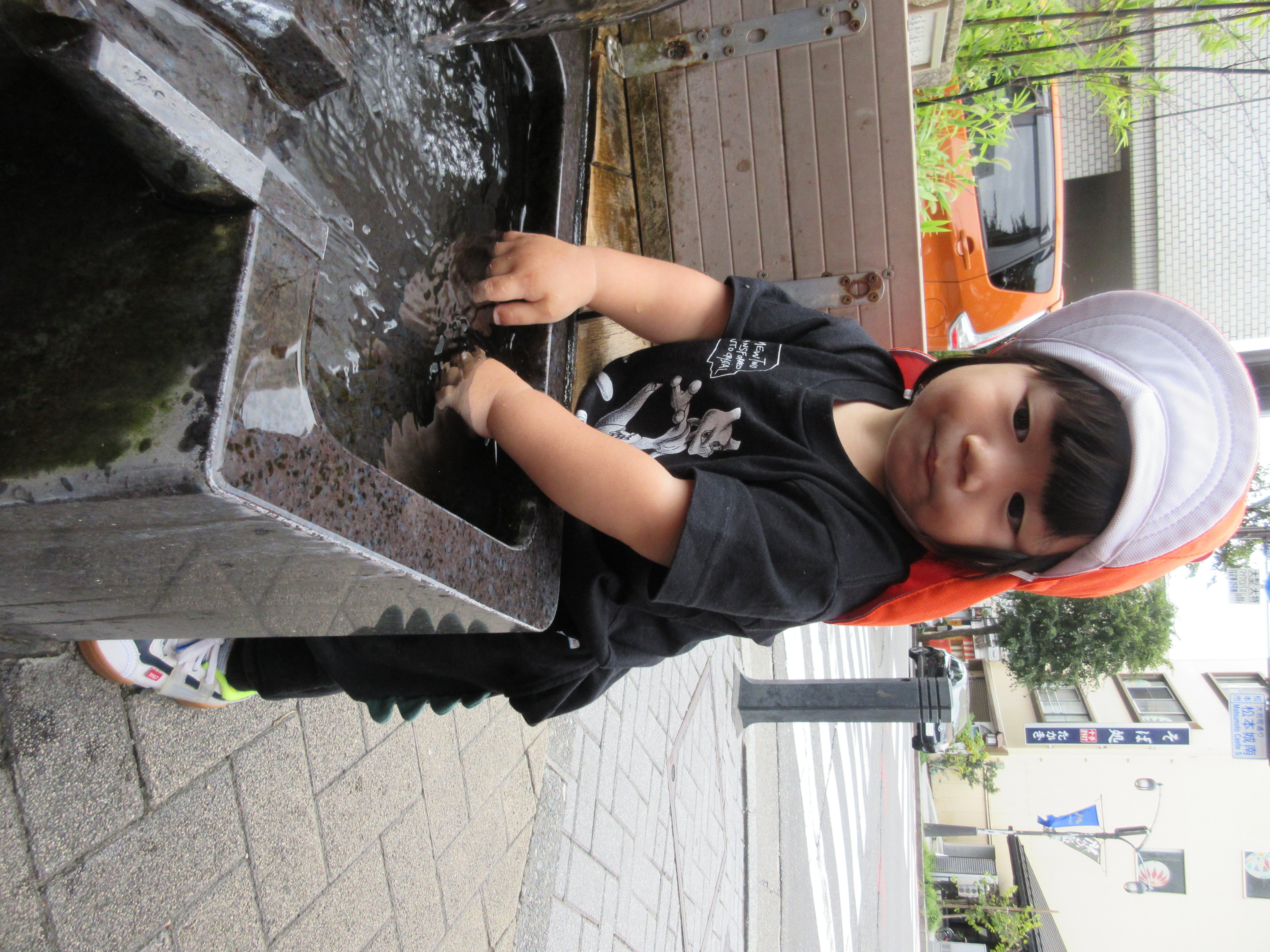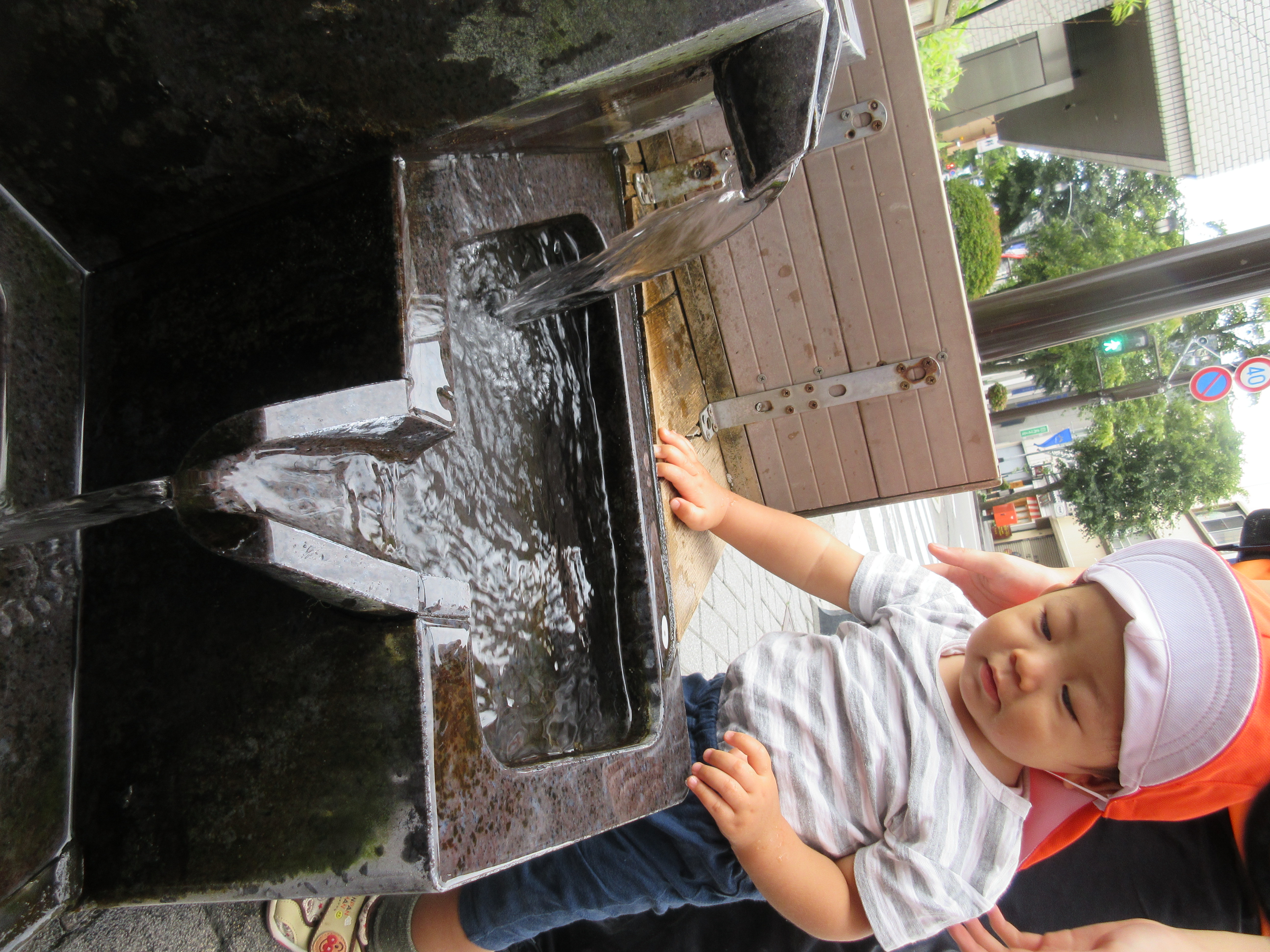 井戸に着くとそれまで眠っていた子も起き、一人ずつ順番に水に触れるのを楽しみました![]()