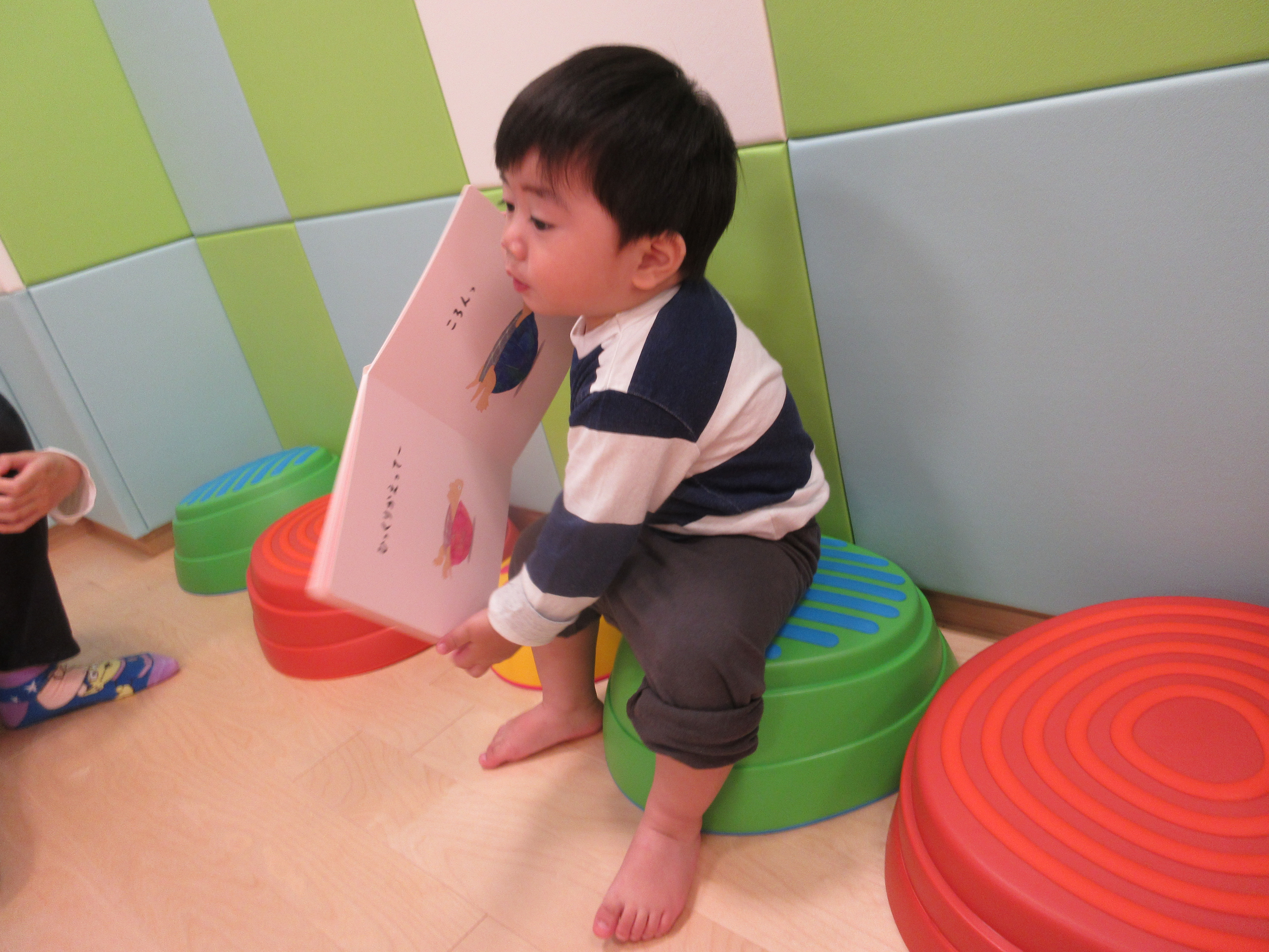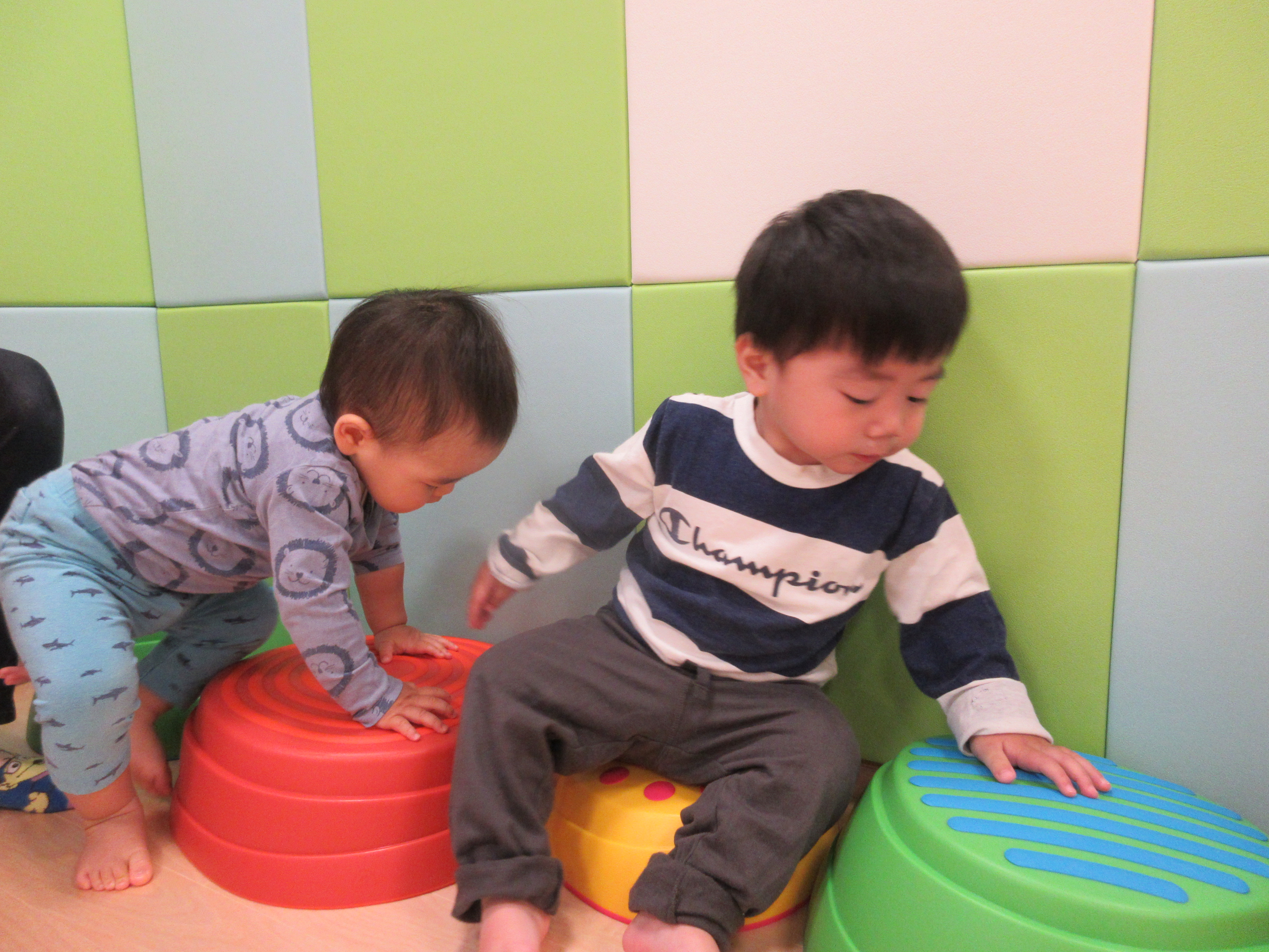 雨が降り、お散歩に行くことができなかった日はお部屋の中で飛び石を使って楽しく身体を動かしました