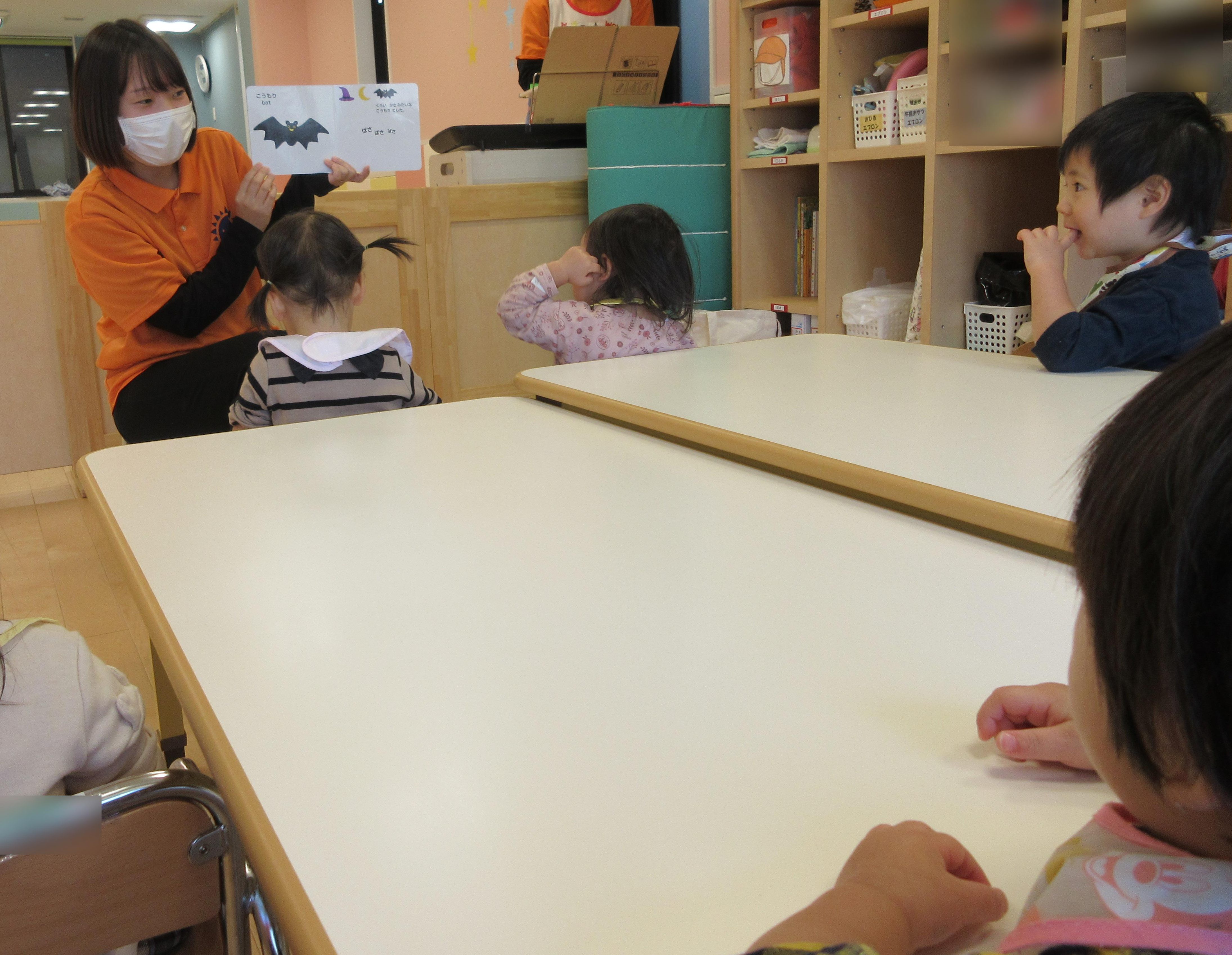 ハロウィン会に向けてこの合言葉でお菓子をたくさんもらえるように頑張って練習しています![]()