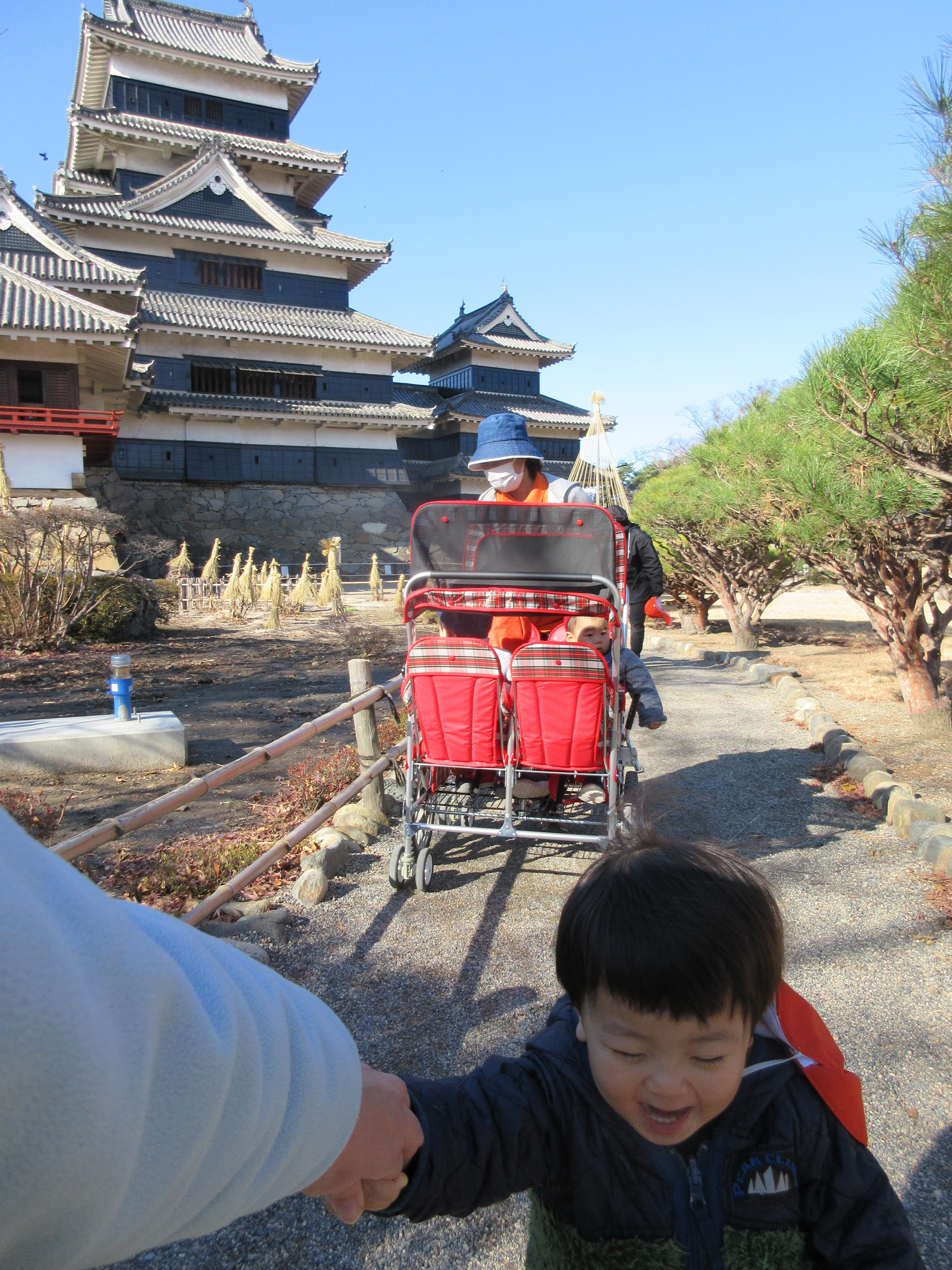 いつもは敷地内で遊んでいますが、今日は窓口で庭園に入っていいか聞いてみたところOKをいただき始めて庭園を散策しました(松本市民は庭園は無料で入ることができます。天守閣は有料となります。)