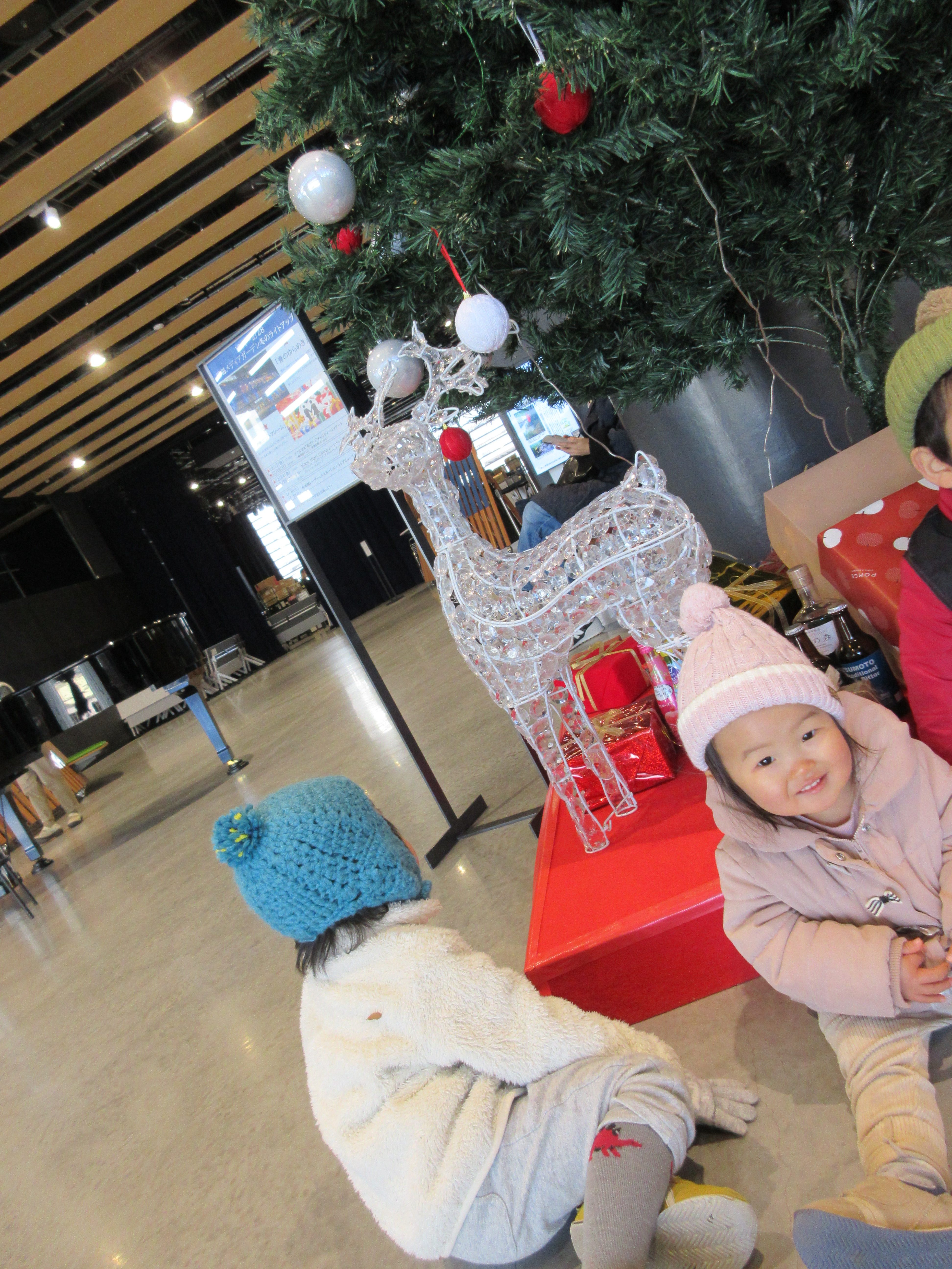 クリスマスツリーが気に入ったのか、集合写真を撮った後もなかなかクリスマスツリーの下から動けない子どもたちでした