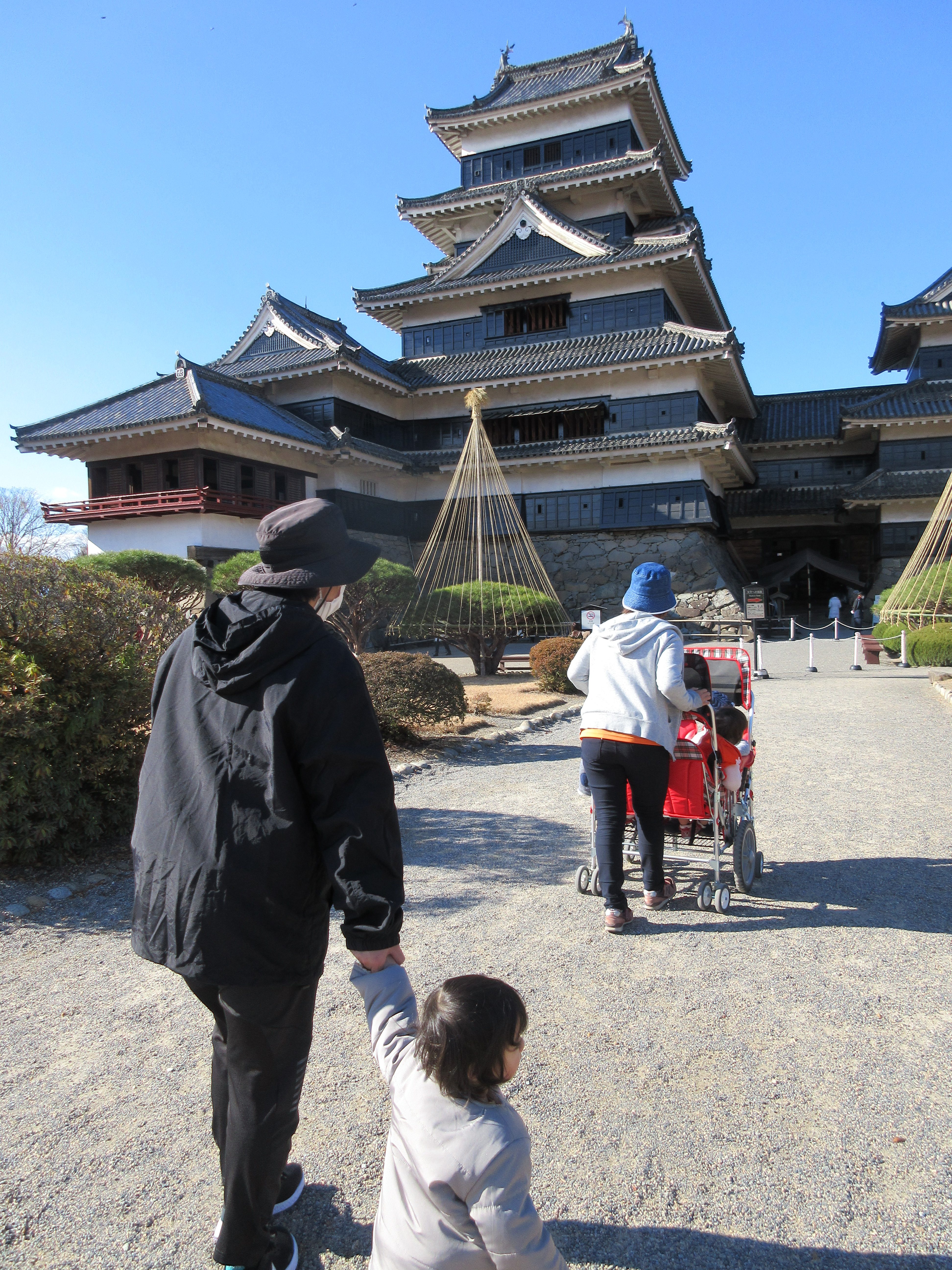 いつもは敷地内で遊んでいますが、今日は窓口で庭園に入っていいか聞いてみたところOKをいただき始めて庭園を散策しました(松本市民は庭園は無料で入ることができます。天守閣は有料となります。)